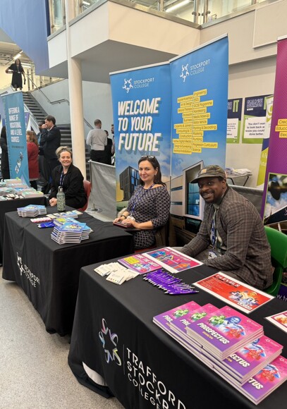 Representatives from local colleges and sixth forms helped our students explore their further education choices; apprenticeship providers gave advice on pursuing paid programs in engineering, hair & beauty, and more; and the Man United Foundation and Cheadle Town FC inspired students hoping to follow a football pathway.