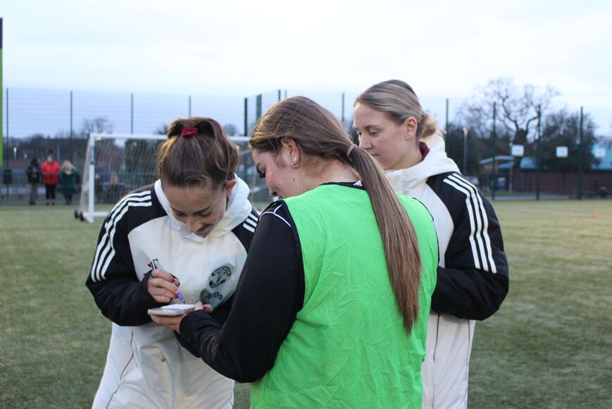 The players spent time in the library with Year 7 students, where they shared their inspiring journeys to becoming professional athletes and playing for the England team. The room buzzed with questions about the successes they’ve had and the challenges they’ve faced during their amazing careers. Then we ventured to the Astro Turf, where football practice was well underway. The players took the time for photos and autographs, and played some football with our girls team.