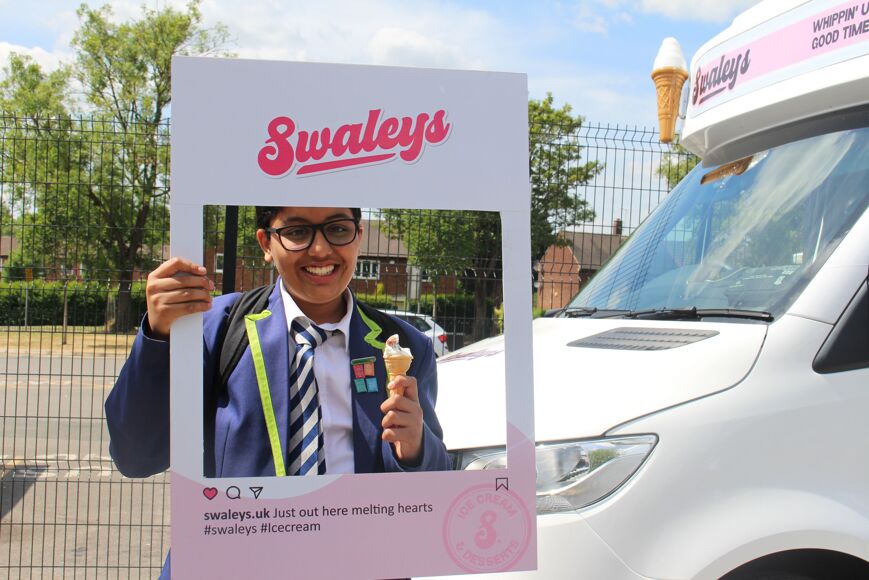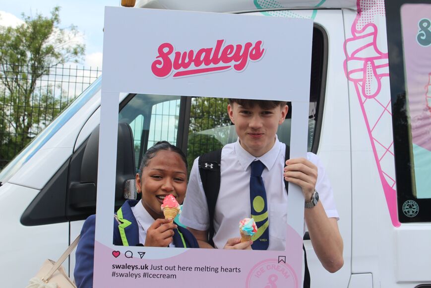 The final day of the May half term at MEA was met with cheers of delight as an Ice Cream Van rolled into school. As a reward for their fantastic attendance, behaviour, and hard work this term, students were treated to an ice cream cone and enjoyed the sunshine. It was lovely to see everyone relax after their consistent effort and enthusiasm throughout the term, and a great way to recognise the hard work and positive habits that lead to excellent attendance. A huge thank you to Swaleys for visiting and making the day such a special one!