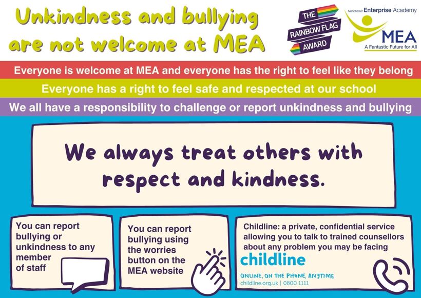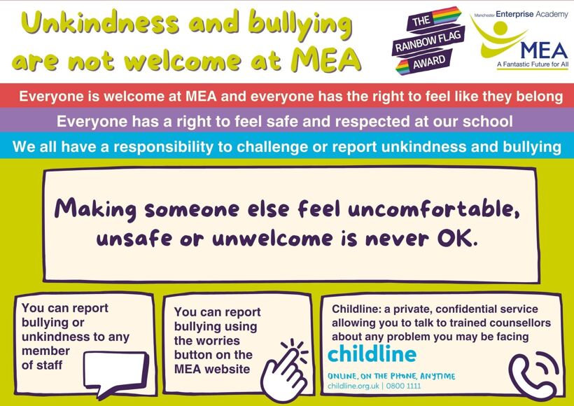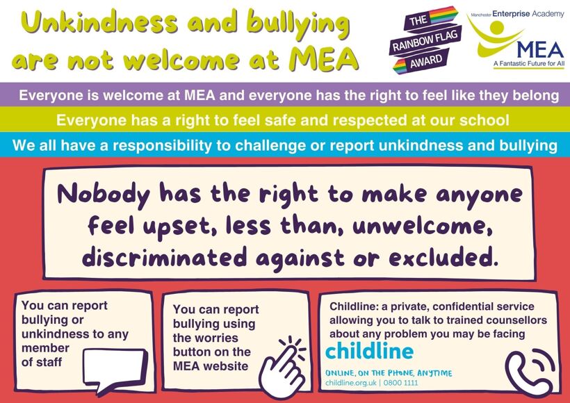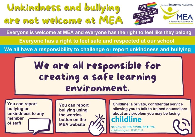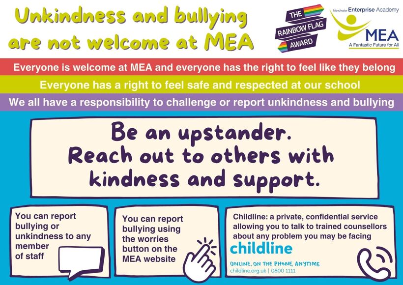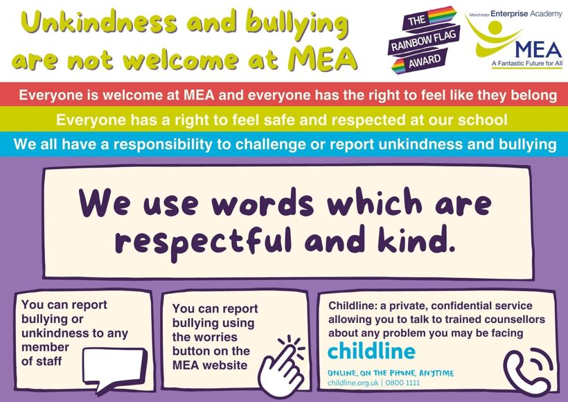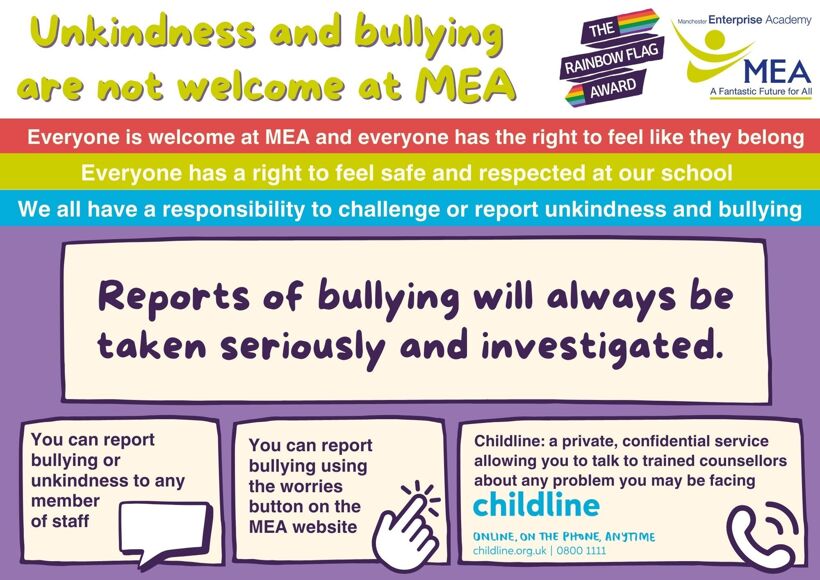At MEA we recognise the significant impact that bullying can have on the welfare and attainment of young people.